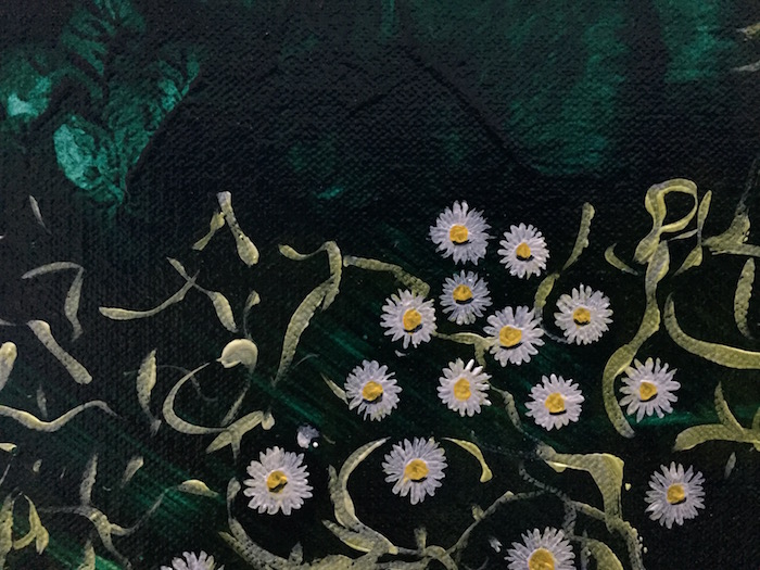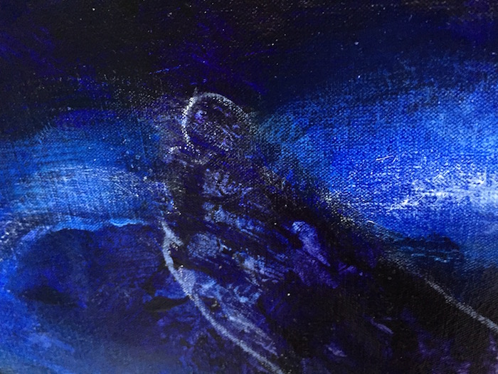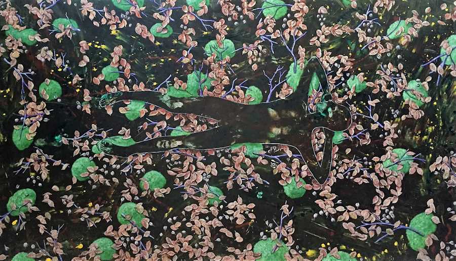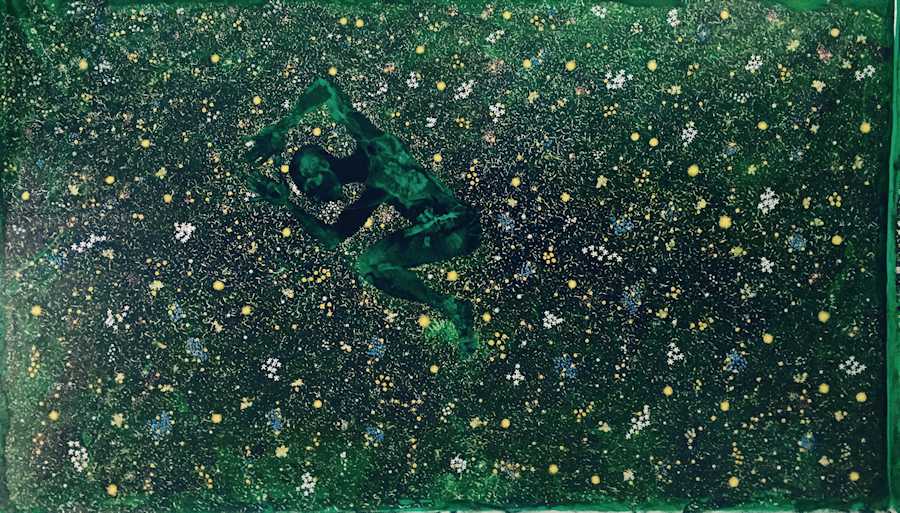 The majority of the paintings will be new work with accompanying video about the relationship between mankind and the natural world. Many will be large - 2.2m by 3.5m - and will be displayed fixed to the wall as tapestry. These paintings begin as body prints made in the landscape, a process which I video. I then work on the body prints in the studio, creating images in line with the place of their making.