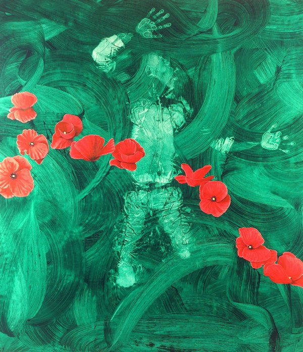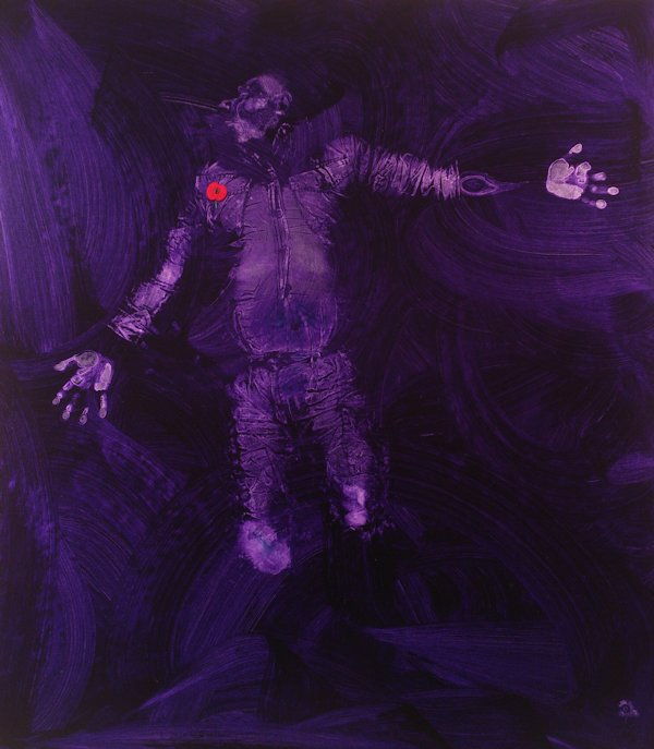 This project involved making body prints with Darren Swift, who lost both his legs in Belfast in 1992. The resulting images bring a harsh reality to modern battle, but there is also the celebration of survival. The paintings, despite the violent image, are beautiful and reward close inspection. Two are overlaid with poppies as a reminder of Remembrance Day. Darren has a career as an actor - recently playing Corporal Chris Ward in 'The Two Worlds of Charlie F', Royal Haymarket Theatre and touring. Look under 'Videos' on this website for film of making these prints.