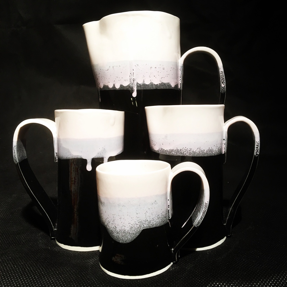 These hand built porcelain pieces are vitrified and thin walled and can crack if boiling water is poured directly into them. Please warm the tea or coffee pot before use with tap water, pour milk in first for a mug of instant coffee, pour onto the teabag for a mug of teabag tea.